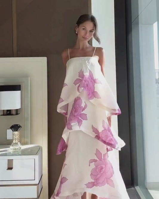 Elliatt - Roselle Tiered Midi Dress Pink Floral